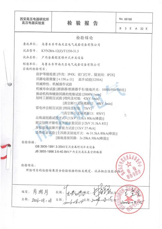 KYN28A檢測(cè)報(bào)告