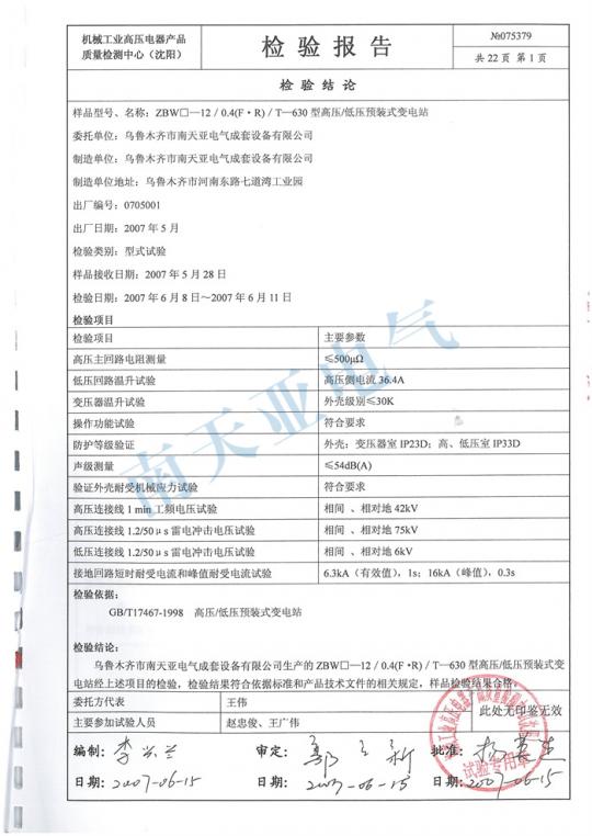 箱變630 檢測(cè)報(bào)告